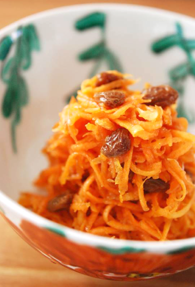 ①人参は千切りにする。 ②レーズン、ひんぎゃの水塩、酢、はちみつ、オリーブオイルを加え混ぜる。 | |||