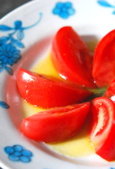 ①トマトは食べやすい大きさに切る。 ②ドレッシングは、オリーブオイル以外をボウルに入れ、よく混ぜ、オリーブオイルを少しずつ加え混ぜ、乳化させる。 ③器にトマトを盛り付け、ドレッシングをかける。 | |||